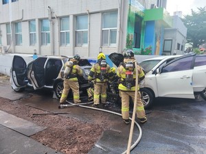 제주의 한 도로에서 차량 화재가 발생했으나 인명피해는 없었다.13일 제주소방안전본부에 따르면 이날 오전 8시13분께 제주시 연동의 한 도로에서 차량에 불이 나 출동한 119에 의해 15분만에 진화됐다.차량 운전자는 운행 중 경유 냄새가 심하게 발생해 차를 세웠고, 주차 직후 엔진룸에서 화염을 목격해 119에 신고한 것으로 파악됐다.이날 인근 차량까지 2대가 불에 타면서 소방서 추산 960여만원의 재산피해가 났다.소방당국은 정확한 화재 원인을 조사 중이다. 고기욱 기자