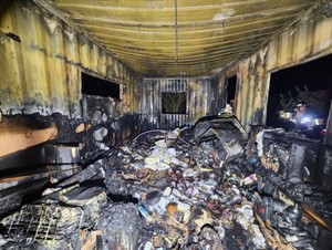 제주의 한 컨테이너 창고에서 화재가 발생했지만 인명피해는 없었다.13일 제주소방안전본부에 따르면 이날 오전 12시20분께 제주시 애월읍의 한 컨테이너 창고에서 불이 나 출동한 119에 의해 30여분만에 진화됐다.이 화재로 창고 18㎡가 전소되고 냉장고 3대, 기자재 40상자가 불에 타면서 소방서 추산 780여만원의 재산피해가 났다.소방당국은 창고 내 냉장고에서 전기적 요인에 의해 불이 시작된 것으로 보고 정확한 화재 원인을 조사 중이다.
