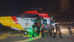 제주 추자도에서 폐렴이 의심되는 호흡곤란 환자가 발생해 해경이 긴급이송에 나섰다.18일 제주해양경찰청에 따르면 지난 17일 오후 8시께 80대 A씨가 호흡곤란 등 폐렴 의심 증세로 긴급 이송이 필요하다는 추자보건지소의 신고가 접수됐다.이에 해경은 이날 오후 8시33분께 헬기를 이륙시켜 A씨와 보호자를 태운 뒤 오후 9시13분께 제주공항에서 119구급대에 인계했다.한편 제주해경청은 올해 들어 헬기를 이용해 모두 11명의 응급환자를 이송했다. 고기욱 기자
