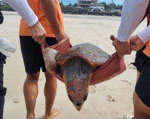 등갑(등껍질)을 심하게 다친 멸종위기종인 붉은바다거북이 서귀포 해상에서 발견돼 구조됐다.28일, 서귀포해양경찰서에 따르면 지난 27일 오후 3시20분께 서귀포시 표선면 표선해수욕장 상황실에서 약 200m 떨어진 해상에서 붉은바다거북이 발견됐다는 신고가 접수됐다.해경은 해수욕장 안전요원과 함께 붉은바다거북을 해안가로 이동시킨 뒤 산소 공급과 체온 유지 등 응급조치를 실시했다. 구조된 붉은바다거북의 크기는 길이 70㎝, 폭 40㎝, 무게는 20㎏ 가량으로 등갑에 지름 21㎝의 골절 상처가 있었지만 포획 흔적은 발견되지 않았다.해경은 붉