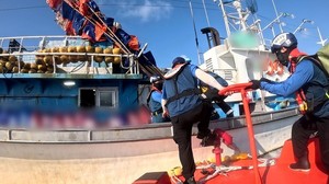 제주 해상에서 조업 중이던 한 어선에서 응급환자가 발생해 남해어업관리단이 해경에 인계했다.5일 해양수산부 남해어업관리단에 따르면 이날 오전 6시께 서귀포시 성산포항 동쪽 약 43해리 해상에서 어선 A호 선장이 어지러움과 구토를 호소한다는 신고가 접수됐다.당시 A호는 또 다른 어선인 B호와 교신하던 중 교신이 끊기자 B호가 남해어업관리단에 신고한 것으로 전해졌다.남해어업관리단은 무궁화33호를 급파, 뇌경색 증상을 보이는 A호 선장을 구조해 해경 헬기에 인계했다.안명호 남해어업관리단장은 "해상 위급상황에 신속히 대응해 국민 생명을 지키