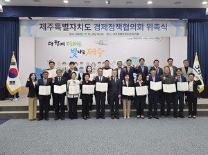 제주도는 11일 도청 탐라홀에서 ‘제주특별자치도 경제정책협의회 위촉식’을 개최했다.이번 위촉식은 기존 위원 임기 만료에 따라 신규 및 연임 위원을 포함한 총 30명(위촉식 21명, 당연직 9명)으로 재구성함으로써 협의체를 새롭게 출범시키기 위해 마련됐다.협의회는 ‘제주특별자치도 경제정책협의회 조례’에 따라 설치된 자문기구로 제주도 주요 경제정책 수립 및 지역산업 육성방안에 대한 자문과 협의 기능을 수행한다.위원장은 오영훈 제주도지사가 맡고, 부위원장을 포함한 30명 이내 위원으로 구성된다.위원은 경제·산업·금융·연구·관광·1차산업·