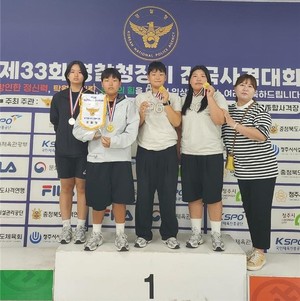 제주여자상업고등학교 학생 사격 선수들이 9월 연이어 열린 전국대회에서 단체전 금메달을 거머쥐며 '사격 명문'의 위상을 굳건히 하고 있다.29일 제주도사격연맹에 따르면 제주여상은 지난 23일부터 28일까지 창원특례시 국제사격장에서 개최된 '2024 한국실업연맹회장배 전국사격대회' 단체전에서 대회 신기록을 세우며 시상대 가장 높은 곳에 올랐다.강지예·강서정·양서윤·김유나로 꾸린 제주여상팀은 25일 열린 10m 공기권총에 출전해 1800점 만점 가운데 1685점을 명중하며 1위를 차지했다. 2위(전남체고 1677점)와 8점 차이를 벌렸으