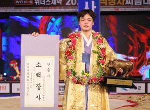 황찬섭(제주특별자치도청)이 생애 첫 황소 트로피를 들어올렸다.황찬섭은 지난 15일 경상남도 고성군 고성국민체육센터에서 열린 '위더스제약 2024 추석장사 씨름대회' 소백장사(72㎏ 이하) 결정전에서 김성하(창원특례시청)을 3-0으로 제압하며 소백장사에 등극했다.황찬섭은 앞선 16강전에서 임상빈(창원특례시청)을 2-0으로, 8강전에서 초대 소백장사 임종걸(수원특례시청)을 2-0으로 꺾으며 준결승전에 진출했다.준결승전에서는 노민수(울주군청)를 2-0으로 누르고 3년 만에 장사결정전에 올랐다.5판 3선승제인 결승전 첫 번째 판에서 황찬섭