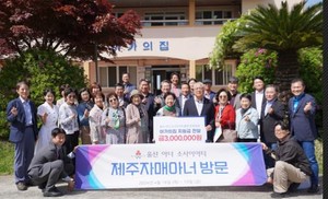 제주아너소사이어티클럽(회장 이철수)과 울산아너소사이어티클럽(회장 박정희)은 최근 제주 아가의 집을 방문해 제주사회복지공동모금회(회장 강지언)에 성금 300만원을 기탁했다.이번 성금은 최근 제주아너소사이어티클럽과 울산아너소사이어티클럽이 자매결연을 맺으면서 마련된 것이다.박정희 회장은 "제주아너소사이어티클럽과의 인연을 통해 제주에 기부금을 전달하게 돼 기쁘다"며 "자매결연이 오래 지속돼 제주지역 취약계층의 복지향상을 위해 함께 노력할 수 있길 바란다"고 말했다.