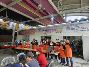 서귀포시산림조합(회장 김성철)와 푸르미 여성회(회장 좌성미)는 23일 서귀포매일올레시장 공연장에서 40여명의 회원이 참석해 지역어르신 250여명을 대상으로 사랑의 밥차 배식 봉사활동을 전개했다. 김성철 회장은 "지속적인 봉사활동으로 지역사회의 나눔문화 실천에 기여하겠다"고 말했다.