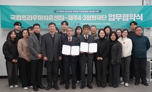 제주4·3평화재단(이사장 김종민)과 국립트라우마치유센터(원장 차호준)는 10일 국가폭력 트라우마 치유와 치유공동체 형성을 위한 업무협약을 체결했다고 밝혔다.이날 협약을 통해 두 기관은 △제주4·3 트라우마 치유 대상자 발굴 및 치유 활동 지원 △제주4·3 학술 연구 조사 관련 상호 협력 △제주4·3 관련 피해 공동체 치유 및 유족 복지 활동 지원 △제주4·3 인식개선을 위한 인적·물적 자원 활용 및 정보 공유 등에 협력한다.제주4·3이라는 공통분모를 가진 양 기관은 이날 협약을 통해 각 기관의 실질적 성과 달성에 시너지 효과가 크게