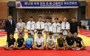 제주 유도 학생 선수들이 전국 대회에서 메달을 휩쓸며 선전했다.제주도유도연맹(회장 강만순)에 따르면 제주 선수들이 19~23일 경상북도 문경시 문경실내체육관에서 열린 '제52회 추계 전국 초·중·고등학교 유도연맹전'에서 금메달 6개, 은메달 2개, 동메달 6개를 획득했다.학교급별로 남초부 메달 획득 선수는 남초부 △-42㎏ 안우영(한라유도클럽 6) 금메달 △-60㎏ 강지웅(한라유도클럽 6) 금메달-48㎏ 황준민(한라유도클럽 6) 은메달 △+66㎏ 최명진(신제주유도스쿨 6) 은메달이다.남중부에서는 △-51㎏ 김지후(애월중 3) 금메달