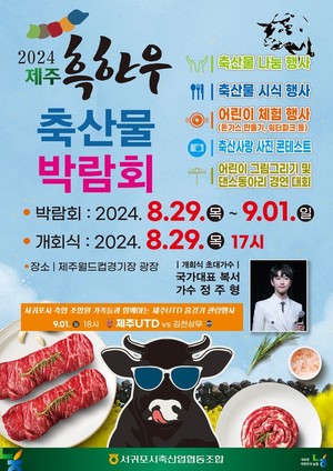 제주유나이티드 홈 경기도 관람하고, 제주산 흑우를 맛볼 수 있는 '2024 제주 흑한우 축산물 박람회'가 제주월드컵경기장에서 열린다.제주유나이티드(이하 제주)는 오는 29일부터 홈경기 날인 다음달 1일까지 나흘간 제주월드컵경기장 광장에서 박람회를 개최한다고 28일 밝혔다.이번 박람회는 서귀포시 주최, 서귀포시축산업협동조합 주관에 제주가 행사의 전반적인 운영을 맡아 천연기념물로 지정된 제주 흑우의 우수성을 알린다.29일 오후 5시 개회식을 시작으로 박람회에서는 흑한우 음식점 할인(최대 50%) 판매가 상시 운영되며, 음식점 이용 고객