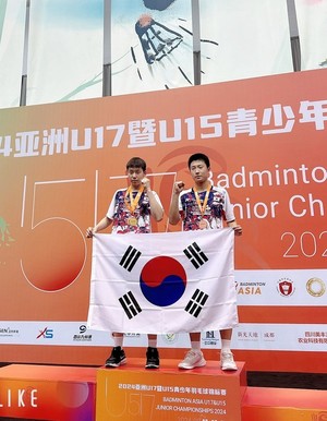 '제주 배드민턴 기대주' 서현규(제주사범대학부설중 2)가 아시아주니어선수권에서 금메달과 동메달을 수확했다.제주도배드민턴협회(회장 이상순)에 따르면 서현규는 지난 25일 중국 청두에서 열린 2024 아시아주니어배드민턴선수권 대회 15세 이하(U-15)에 참가해 혼합복식 금메달, 남자복식 동메달을 차지했다.서현규는 혼합복식에 박유정(시흥능곡중)과 출전해 결승에서 대만을 만나 2-1(18-21, 21-9, 21-18)로 역전승을 거뒀다. 남자복식은 강용호(아현중)와 함께 대회에 나서 준결승전에서 중국에 아쉽게 석패하며 동메달을 거머쥐었다