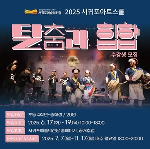서귀포예술의전당은 청소년을 대상으로 전통춤과 현대춤을 융합한 '탈춤과 힙합' 문화예술 교육 프로그램 참여자 20명을 6월 17일부터 19일까지 서귀포예술의전당 홈페이지를 통해 모집한다.'탈춤과 힙합'은 올해 서귀포예술의전당 문화예술교육 '서귀포아트스쿨'의 일환으로 한국 전통 공연예술인 탈춤과 힙합(비보잉)을 결합한 체험을 통해 청소년들의 몸과 마음 건강 증진을 도모하기 위해 마련된 프로그램이다.이번 프로그램을 통해 전통 탈춤과 MZ세대의 힙합(비보잉) 등 흥겨운 리듬에 맞춰 즐기는 체험을 통해 청소년들이 예술에 쉽게 다가가며 자유로