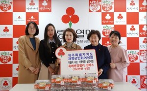 제주도재향군인회 여성회(회장 강성림) 회원 일동은 최근 제주사회복지공동모금회(회장 강지언)를 방문해 160만원 상당의 간식(흑깨생강젤리)을 전달했다.전달된 간식은 제주도내 취약계층의 복지 증진을 위해 노인 및 노숙인 복지시설로 전달된다.강성림 회장은 "더불어 사는 지역사회를 위해 간식을 마련했다"며 "앞으로도 우리 회원들과 함께 나눔을 실천할 수 있도록 노력하겠다"고 말했다.한편 제주도재향군인회 여성회는 지난해 12월 연말을 맞아 지역사회내 어려운 아동들을 위한 상품권 150만원을 기탁하는 등 나눔활동에 동참하고 있다.