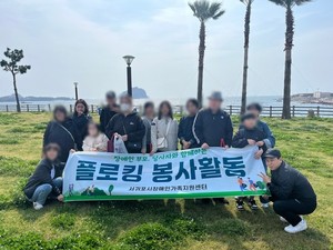 서귀포시장애인가족지원센터(센터장 허용훈)는 10일 장애인 부모와 당사자 자조 모임 회원 등 14명이 참여한 가운데 자구리 공원 일원에서 쓰레기를 줍는 플로깅 봉사활동을 진행했다.허용훈 센터장은 "이번 환경정화 활동이 장애인 가정의 사회활동 참여를 활성화하는 계기가 되길 바란다"며 "앞으로도 서귀포시 장애인 가정을 위한 다양한 프로그램을 추진하겠다"고 밝혔다.