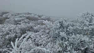 올가을 들어 한라산에 첫눈이 내렸다.제주지방기상청은 18일 한라산 어리목과 영실 등 산지에서 올가을 첫눈이 관측됐다고 밝혔다. 지난해 첫눈은 11월 26일로, 올해는 이보다 8일 빠른 기록이다.제주기상청에 따르면 이날 낮 12시30분 기준 삼각봉에는 1㎝, 사제비에는 0.5㎝의 눈이 쌓였고, 산지 예상 적설량은 1~5㎝로 예보됐다.최근 10년간 한라산 첫눈은 2021년이 11월 8일이 가장 빨랐고 2022년에는 11월 30일로 가장 늦게 관측됐다.올해 첫 상고대는 지난 17일 관측돼 지난해보다 7일 앞섰고, 첫 서리 역시 지난해보다