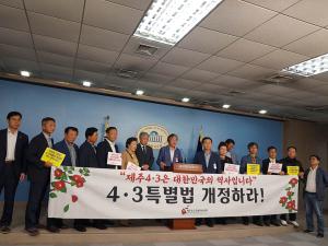 4·3희생자유족회 5일 국회서 기자회견 위성곤·오영훈 조속한처리에 한 목소리 제주4․3희생자유족회(회장 송승문)가 5일 국회를 찾아 4·3특별법개정안의 조속한 처리를 촉구했다.유족회는 이날 국회 정론관에서 기자회견을 갖고 “진정한 4·3진상규명과 희생자 명예회복을 위해 올해 안에 반드시 4·3특별법개정안을 처리해야 한다”며 이 같이 밝혔다.제주4·3특별법개정안은 앞서 지난 4월 행정안전위원회 법안소위원회 법안심사에서 다뤄진 바 있지만 국회 파행으로 매듭을 짓지 못한 채 논의가 중단된 상황이다. 유족회는 “기존 제주 4·3