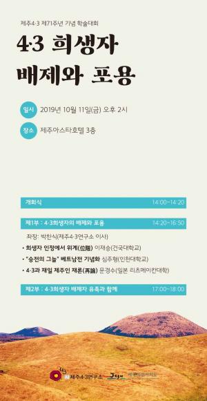 제주4·3연구소 4·3 71주년 학술대회…11일 오후 2시 제주시 아스타호텔4·3희생자로 인정받지 못한 채 배제된 사람들에 대해 조명하고 포용 방안을 논의하는 자리가 마련된다.제주4·3연구소(이사장 이규배, 소장 허영선)는 오는 11일 오후 2시부터 제주시 아스타호텔에서 ‘4·3희생자, 배제와 포용’을 주제로 제주4·3 71주년 기념 학술대회를 개최한다.이번 학술대회는 1·2부로 나눠 진행되며 제1부에서는 ‘4·3희생자의 배제와 포용’을 소주제로 박찬식 제주4·3연구소 이사가 좌장을 맡아 이재승 건국대 법학전문대학원 교