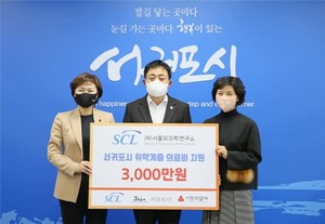 SCL (재)서울의과학연구소(총괄의료원장 이경률, 이하 SCL)는 18일 서귀포시청에서 의료 취약계층을 위한 성금 3000만원을 제주사회복지공동모금회(회장 강지언)에 기탁했다.이번 성금은 앞서 SCL이 제주시 의료 취약계층을 위해 3000만원을 기부한데 이어 서귀포시내 어려운 이웃을 위해 마련한 것으로, 서귀포시청을 통해 의료비 지원 등에 사용된다.이경률 총괄의료원장은 "사회적 의료기관으로서 지역사회 의료복지 증진에 기여하고자 한다"며 "앞으로 진단의학분야의 성장을 이끌며 도민들의 건강 증진에 기여할 수 있도록 노력하겠다"고 말했다