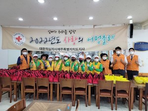대한적십자사제주특별자치도지사(회장 오홍식)는 최근 적십자봉사원 40여명이 참여한 가운데 도내 취약계층 400가구에 사랑의 어멍촐레 밑반찬을 만들어 전달했다.이번 봉사활동에는 용담1동봉사회(회장 김영철)와 성산일출봉사회(회장 김희숙), 수목원봉사회(회장 양해자), 제주신협 두손모아봉사단(단장 허두은) 등이 동참했다.밑반찬은 아동·청소년, 노인, 한부모 가정 등에 전해졌다.김희숙 성산일출봉사회장은 "봉사원들과 함께 따뜻한 마음이 담긴 밑반찬이 조금이나마 도움이 되길 바란다"며 "앞으로도 지역사회를 위해 나눔과 봉사활동을 실천하겠다"고
