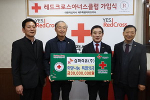 삼화석유㈜(대표이사 홍성준)는 최근 대한적십자사제주도지사(회장 오홍식)를 방문해 지역사회 소외된 이웃을 돕는데 써달라며 희망나눔 특별성금 3000만원을 전달했다.이번 성금은 삼화석유 창립 70주년을 맞아 연말연시 어려운 이웃에 희망을 전하기 위해 마련됐으며, 위기가정 긴급지원, 희망풍차 결연, 밑반찬 나눔 등 적십자 인도주의 활동에 사용된다.홍성준 대표는 "추운 겨울 힘든 시기를 보내고 있는 분들에게 위안이 됐으면 좋겠다"며 "앞으로도 기업 이익의 꾸준한 사회 환원으로 지역사회와 상생하는데 최선을 다하겠다"고 말했다.한편 홍 대표는