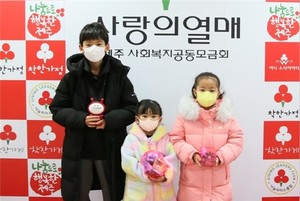 한라초등학교 5학년에 재학 중인 문정혁군과 김하율(7)·김서율(4) 자매는 최근 제주사회복지공동모금회를 방문해 지역내 형편이 어려운 이웃들을 위해 사용해 달라며 성금 27만7530원을 기탁했다.이번 성금은 어린이들이 기부를 위해 저금통에 돈을 모아 마련한 것으로, 도내 형편이 어려운 이웃들의 생계비와 의료비 등을 지원하는 데 사용될 예정이다.어린이들은 이날 저금통을 전달하면서 "저금통에 모은 돈으로 어려운 이웃을 도울 수 있어 기쁘다"면서 "우리의 나눔이 어려움을 겪는 분들에게 힘이 됐으면 좋겠다"고 말했다. 고기욱 기자