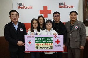 고효빈, 고서윤 자매는 최근 대한적십자사제주특별자치도지사(회장 정태근)를 방문해 소외된 이웃을 위해 사용해달라며 희망나눔 특별성금 100만원을 기탁했다.이들 자매는 지난 1년간 지역사회의 어려운 이웃을 돕기 위해 용돈을 모아 성금을 마련했다.제주적십자사는 도내 취약계층 아동, 청소년을 지원하는데 성금을 사용한다.자매의 아버지인 고동석씨는 "경제적으로 어려움을 겪고 있는 친구들에게 도움을 주고 싶다는 아이들의 바람으로 함께 성금을 전하게 됐다"며 "작은 정성이지만 희망이 됐으면 좋겠다"고 말했다.한편 이들 자매 가족은 연말연시 이웃사