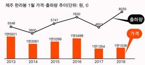 11월 조기출하까지 상품 관리 취약…재배지 북상에 경쟁 치열외부 변수 대응방안 부재, 소비자 중심 철저한 수급 관리 절실 '제주 한라봉'이 위기에 봉착했다. 처음 겪는 일은 아니지만 올해는 경기둔화로 소비가 줄어든데다 타 지역산 경쟁까지 심화하면서 맥을 못 추고 있다. 이를 막기 위해 도입한 '지리적표시제'이점까지 무력화 하는 등 총체적 난국에 직면했다.△ 시장 경쟁·소비 둔화 악재 산재감귤출하연합회에 따르면 이달 들어 9일까지 한라봉 3㎏ 박스당 평균 출하가격은 9753원에 그쳤다. 설 대