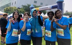 교환학생으로 제주대 정치외교학과에 재학하고 있는 요코하마 가나씨(21)는 일찍부터 대회장을 찾았다. 함께 공부하고 있는 인도네시아 친구 알피라(21)가 “한 번 해보자”고 제안하면서 또래는 물론이고 이국 생활에 지친 교환학생 여러 명이 팀을 이뤘다.출신 국가는 달랐지만 이들의 공통으로 쓰는 말은 영어와 한국어다. 몇 번 얘기하다 의미가 전달되지 않는 것 같으면 이내 한국어를 쓸 정도다. 요코하마씨는 “마라톤 자체가 하나의 도전”이라며 “친구들과 좋은 추억을 남기는 것도 즐겁고 제주에서 벌어지는 여러 가지 일들을 직접 볼 수 있는 것