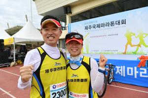 제주국제마라톤대회가 평화의 섬 제주를 대표하는 마라톤 대회로 자리매김할 수 있었던 데에는 제주도내 자원봉사단체와 기관·업체가 한마음 한뜻으로 함께 대회를 준비했기에 가능했다.이번 대회에는 제주철인클럽(회장 김규리), 노고로기적십자봉사회(회장 김재홍), 제주대학교병원 제주권역심뇌혈관질환센터(병원장 주승재), 제주근로자건강지원센터(센터장 이영일) 등 봉사단체와 기관들이 애향운동장에 투입돼 안내와 홍보 등에 나서면서 성공적인 대회 개최에 기여했다. 이날 노고로기적십자봉사회와 제주철인클럽은 출전 선수들의 안전과