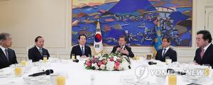 5부요인 靑초청 오찬 "가장 걱정했던 날, 국민 마음 하나로 모아야""안보위기 외부서 조성돼 우리 주도로 못 해…내부 결속으로 극복"정세균 "개헌 이번엔 꼭 성공해야…정기국회 때도 국회 오셨으면"김명수 "국민한테서 진정으로 사랑받는 사법부 만들겠다"문재인 대통령은 10일 "여야 간 적어도 안보에 관해서는 늘 인식을 공유하고 초당적 협력을 할 수 있는 여·야·정 국정 상설협의체가 구성된다면 국민 마음을 하나로 모으는 데 힘이 될 것"이라고 말했다.문 대통령은 이날 청와대에서 열린 정세균 국회