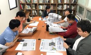 제민일보 편집심의위원회(위원장 김석주 편집국장)는 30일 본사 편집국 회의실에서 7월 1차 회의를 열고 지면·인터넷 개선 방안을 모색했다. 김석주 편집국장은 "편집·외근 기자간 열린 소통으로 독자가 읽기 쉬운 지면을 고민해야 한다"며 "본지뿐만 아니라 인터넷과 모바일앱에 대한 개선도 함께 고민해야 한다"고 주문했다. 김봉철 편집부 차장은 "경제면은 수치가 다른 분야 기사보다 많이 쓰이기 때문에 글로만 표현하면 가독성을 떨어뜨릴 수 있다"며 "가독성을 높이는 표와 그래프를 적극적으로 활용해야 한다"고 말했다. 이은지 기