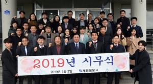 제민일보 2일 시무식 개최올해의 기자대상 시상식도 제민일보(대표이사 사장 김영진)는 2일 오후 광령사옥 1층 대회의실에서 임직원 등이 참석한 가운데 2019년 시무식을 개최하고 올해 업무에 돌입했다.제민일보 임직원들은 이날 새해 인사를 통해 화합을 다지고 회사와 언론의 역할, 지역발전을 위해 역량을 모으기로 했다.김영진 대표이사 사장은 "지역경제나 언론 환경이 어려울 때일수록 임직원들이 서로 소통하고 용기를 북돋아 주면서 온기있는 직장 분위기를 조성해야 한다"며 "발전적인 생각을 공유하면서 지역발전을 위한 언론의
