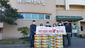제민일보(대표이사 사장 양치석)가 지속적인 나눔 실천으로 지역사회에 긍정의 힘을 전파하고 있다.제민일보 임직원은 8일 제주 애덕의집(원장 허윤정)을 방문해 코로나19로 어려움을 겪는 장애인들을 위해 감귤 20박스를 전달했다.허윤정 원장은 "코로나 여파 속에도 나누미들의 노고에 감사드린다"며 "애덕의집에 보내주는 관심과 사랑을 잊지 않고 앞으로도 발전되는 모습을 보여줄 수 있도록 노력하겠다"고 말했다.