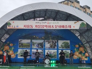 서홍동주민자치위원회(위원장 한봉석)는 지난 8일 서홍동 소공원에서 ‘2025년 제13회 귤향기 피어나는 서홍동 가을음악회·문화예술제’를 개최했다.올해로 13번째를 맞은 이번 행사는 다양한 문화체험 프로그램과 주민자치센터 수강생들의 발표회, 버블매직 공연, 지역가수 초청공연 등 다채로운 문화 예술 공연을 볼 수 있는 시간들로 마련됐다.이날 행사에서는 '문화 예술제' 사업의 일환으로 진행된 1부 행사에서 친환경 EM 비누 만들기, 다육식물 만들기, 석고 방향제 만들기 등 다양한 체험 프로그램이 진행됐다. 2부 음악회에서는 서홍동노인회