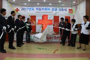적십자사제주도지사 선포식 개최…20억5000만원 목표 2017년도 적십자회비 모금이 본격적으로 시작됐다.대한적십자사 제주도지사(회장 직무대행 송승천)는 1일 적십자사 나눔홀에서 '2017년도 적십자회비 모금 선포식'을 개최했다.이날 행사는 '고맙습니다. 적십자회비! 나눔이 희망입니다'를 주제로 회비모금 제막식, 슬로건 이어 만들기, 바른기업 명패 전달 등의 순으로 진행됐다.이날 김문자 대한적십자사 중앙위원은 RCHC 제주 1호 회원으로 가입, 5년간 1억원 기부를 약속했다.또 △제주은행(은행