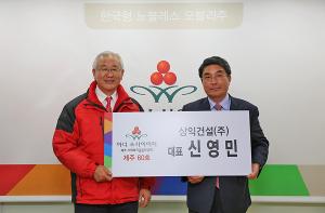 신영민 대표 60번째 아너 가입도내에서 아너 소사이어티 60번째 회원이 탄생했다.8일 제주사회복지공동모금회(회장 고승화)에 따르면 신영민 상익건설㈜ 대표(56·사진 오른쪽)는 이날 공동모금회 사무실에서 어려운 이웃을 위해 5년간 1억원 기부를 약정하는 아너 소사이어티 가입식을 갖고, 나눔문화 확산에 동참키로 했다.신 대표는 도내에서는 60번째, 전국에서는 1365번째 회원이 됐다.국내 뿐 아니라 캄보디아에 학교를 건립하는 등 해외에서도 봉사를 실천하고 있는 신영민 대표는 "올해가 가기 전에 아너 소사이어티에 가입해야 할 것 같아