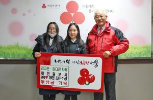 김고은·다은 학생 We♥ 최우수상 시상금 전액 기탁 제민일보사(대표이사 백승훈) 주최 'WeLove(We♥)' 프로젝트 공모전 수상자가 또 다시 나눔을 실천, 주위를 훈훈케 하고 있다.제주동여자중학교에 재학중인 김고은·김다은 쌍둥이 자매(16)는 27일 제주사회복지공동모금회(회장 고승화)를 방문, 도내 어려운 이웃에 전해달라며 'We♥' 공모전 시상금을 기탁했다.김고은·다은 자매는 2008년 8살의 나이로 세뱃돈을 기부하면서 사랑의 열매와 인연을 맺은 후 지속적으로