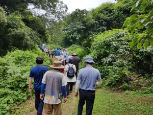 사람들에게 동네 마실가자고 부추기는 주민자치위원회가 있다. 말만 들어도 그 마을 사람들의 행복지수가 그려진다. 제주시 봉개동이야기다. 한 번도 아니고 2015년부터 꾸준히 이어왔다.'동네 마실가기' 행사는 마을의 문화자원과 살아가는 모습을 제대로 알림과 동시에 최근 늘어난 정착주민과 선주민의 소통 기회를 제공하고자 마련됐다. 제주시 봉개동 주민자치위원회(위원장 홍성철)와 봉개동 주민센터(동장 송두영)에서는 지난 18일 올해 2번째 '동네 마실가기'를 실시했다. 용강·명도암 자연환경탐방으로 진행된 이번 행