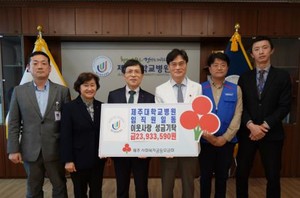 제주대학교병원(원장 최국명) 임직원 일동은 최근 제주사회복지공동모금회(회장 강지언)에 성금 2393만 3590원을 기탁했다.이번 성금은 임직원들이 도내 어려운 이웃을 돕기 위해 십시일반 마련한 것으로, 복지사각지대 발굴 등에 사용된다.최국명 제주대병원장은 "앞으로도 지속적인 나눔을 실천할 수 있도록 최선을 다하겠다"고 말했다. 한편 제주대병원은 2013년부터 매년 직원들이 함께 마련한 성금을 기부하고 있으며, 현재까지 기탁한 성금은 1억7000여만원에 달한다.