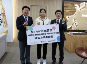 탁구 국가대표 신유빈 선수가 제주도내 한부모·다문화 가구내 청소년을 돕기 위한 나눔활동에 동참했다.제주사회복지공동모금회는 최근 신유빈 선수가 도내 어려운 이웃돕기 성금 1000만원을 기탁했다고 3일 밝혔다.신유빈 선수는 "제주도는 제 소속팀(대한항공)의 연고지로 매우 친근한 곳"이라며 "도내 청소년들이 자신의 꿈을 펼칠 수 있도록 성금이 의미있게 사용되길 바란다"고 말했다.