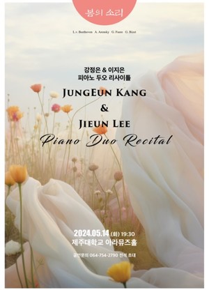 제주대학교 예술디자인대학 음악학부 강정은 교수는 오는 14일 제주대 아라뮤즈홀에서 피아니스트 이지은과 피아노 두오 리사이틀을 개최한다.'봄의 소리'라는 부제로 열리는 이번 무대에서 베토벤, 아렌스키, 포레, 비제 등 four hands와 two pianos의 편성으로 다양한 시대의 친숙한 작품들을 선보일 예정이다.강정은 교수는 한국예술종합학교를 졸업하고 도미해 피바디 음악대학에서 석사와 전문연주자과정, 그리고 박사 학위를 Graduate Assistant 장학생으로 취득했다. 피바디 음대 예비학교 교수를 역임했고 현재 제주대 교수로