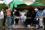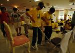 무장애 도시 만들기 행사가 11일 탐라장애인복지회관에서 열린 가운데 참가자들이 안대와 흰 지팡이를 이용해 장애체험을 하고 있다.
