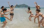 ▲ 장마전선의 북상으로 모처럼 화창한 날씨를 보인 가운데 11일 오전 서울서 제주로 여행온 여대생들이 비키니 차림으로 한림읍 금릉해수욕장에서 물놀이를 하고 있다. ▲ 장마전선의 북상으로 모처럼 화창한 날씨를 보인 가운데 11일 오전 서울서 제주로 여행온 여대생들이 비키니 차림으로 한림읍 금릉해수욕장에서 물놀이를 하고 있다.
