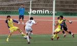 ▲ 제주시 애향운동장서 열린 제15회 백록기전국고교축구대회 조별예선리그 대기고(제주)와 안양공고(경기)간 경기에서 정배근(안양공고)이 세번째 골을 성공시키고 있다. ▲ 제주시 애향운동장서 열린 제15회 백록기전국고교축구대회 조별예선리그 대기고(제주)와 안양공고(경기)간 경기에서 대기고 선수들이 정배근(안양공고)에게 세번째 골을 허