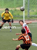 ▲ 제주시 애향운동장서 열린 제15회 백록기전국고교축구대회 조별예선리그 서귀고(제주)와 용문고(서울)간 경기에서 추승우(서귀고)가 동점 헤딩골을 성공시키고 있다. ▲ 고교축구대회 조별예선리그 서귀고(제주)와 용문고(서울)간 경기에서 추승우(서귀고)가 동점 헤딩골을 성공시킨 후 김희권(서귀고)과 하이파이브를 하고 있다.