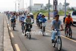 ▲ 자전거를 이용해 다양한 체험을 즐길 수 있는 자전거 페스티벌이 17일 제주시 해안도로 일원에서 열린 가우데 참가자들이 자전거를 타고 해안도로를 질주하고 있다.