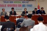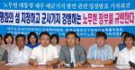 ▲ 제주도군사기지반대대책위원회 등 시민사회단체가 26일 오전 11시 기자회견을 갖고 노무현대통령의 제주해군기지 발언과 관련 입장을 발표하고 있다.