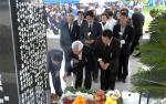 ▲ 한국전쟁 당시 제주북부예비검속에 의해 희생된 희생자 원혼 합동위령제가 25일 오전 11시 제주시 용담레포츠공원 내 위령제단에서 열려 유가족들이 헌화, 분향하고 있다.