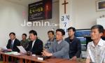 ▲ 제주해군기지 철회운동이 전국 그리스도인으로 확대되는 가운데 31일 한국기독교장로회 제주노회가 늘푸른교회에서 기자회견을 갖고 있다.