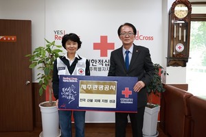 4일 대한적십자사 제주지사 방문임직원 성금 모금 200만원 기부이재민 생계·의료·주거 등에 활용제주관광공사(사장 고승철)가 4일 대한적십자사 제주지사를 방문해 대규모 산불 피해 복구를 위한 성금 200만원을 전달했다.앞서 제주관광공사는 전국 곳곳에서 동시다발적으로 발생한 대형 산불로 커다란 피해를 입은 이재민을 지원하기 위해 지난달 31일부터 4월 3일까지 4일간 임직원 대상 모금 활동을 전개한 결과 모두 200만원의 성금이 마련됐다.이번 기부금은 이재민의 생계·의료·주거 등의 지원과 산불 피해 복구 사업 등에 사용될 예정이다.제주