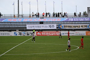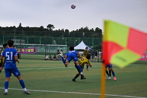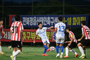 고교 축구에 입성한 저학년 선수들이 본선행 티켓을 두고 조 선두를 차지하기 위한 열전을 펼치고 있다. 폭염에도 선수들의 우승을 향한 열정은 사그라들지 않았다.제민일보사와 대한축구협회가 공동주최, 제주도축구협회가 주관하는 2024 백록기 고교 U17 축구 유스컵 조별예선 2차전이 23일 마무리됐다.이날 홈팀인 서귀포윈인FCU18은 여주대신FCU18을 상대로 4-0으로 완파하며 1승을 거두며 1승 1패로, 같은 조 여의도고와 동률을 기록하며 마지막 경기에서 본선 진출 운명이 결정된다.지난 용문고와의 경기에서 무승부를 거둔 제주제일고는